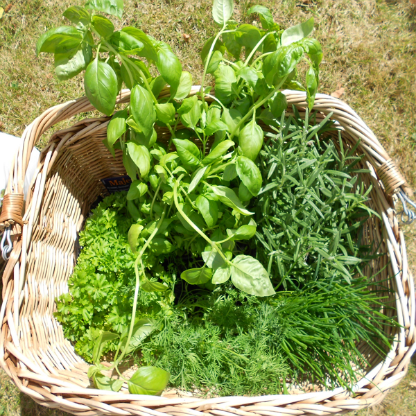 Uwielbiam świeże zioła, ale przyznaję, że nigdy nie miałam pomysłu na sprytne rozmieszczenie kilku doniczek w kuchni, więc zazwyczaj stały na spodeczkach jako te brzydkie, w plastikowych osłonkch, pełniące głównie funkcję użytkową i podlewane do czasu aż nie dokonały żywota lub się nie wyżarły. Dlatego gdy pojawiły się w domu kosze, mój partner wpadł na pomysł wykorzystania ich jako mini-ogródków, które przy dobrej pogodzie będą sobie wisieć i rosnąć na zewnątrz. Zwłaszcza, że mamy skłonność do trzymania roślin raczej jadalnych, które w większości pełniły funkcje ozdobne…